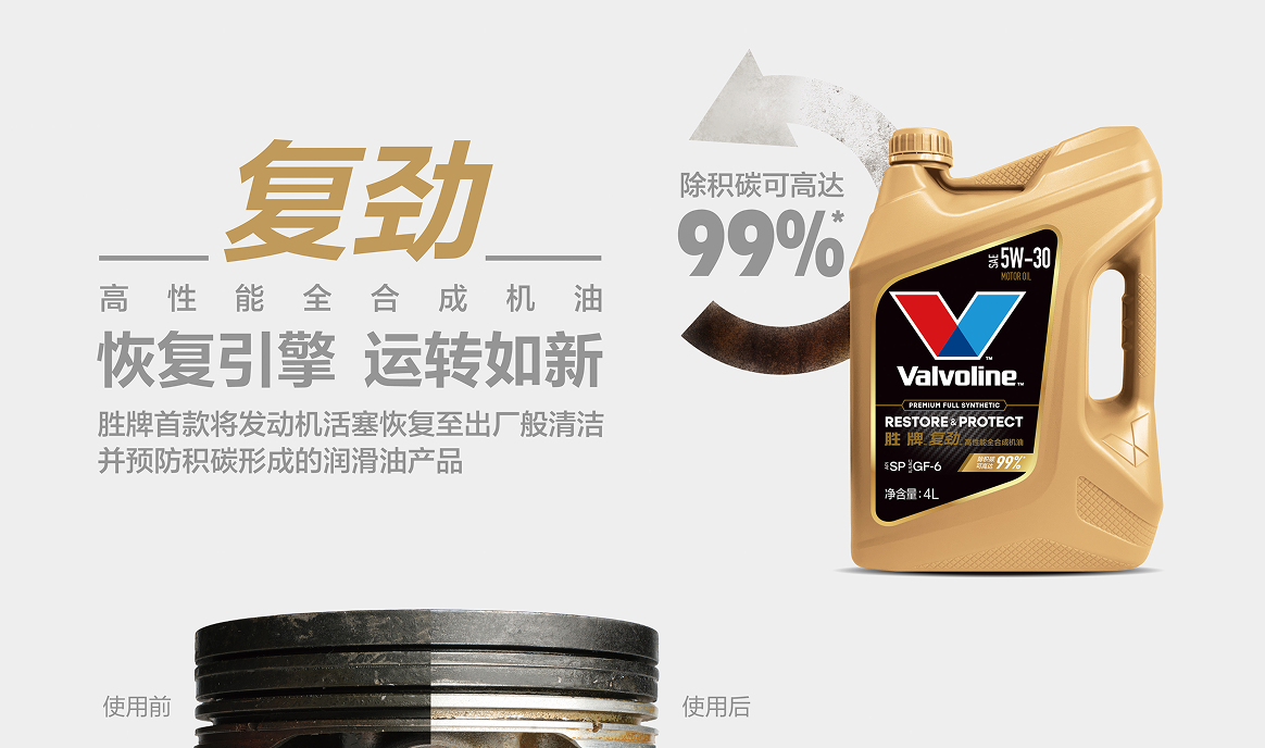 上海2025年5月29日/美通社/ -- 勝牌?全球(Valvoline? Global Operations)—— 汽車及工業解決方案創新者近日宣布,旗下高端汽機油產品"復勁"系列迎來包裝煥新升級,通過創新設計與先進潤滑技術的結合,為中國消費者帶來兼具美學價值與卓越性能的養護解決方案。